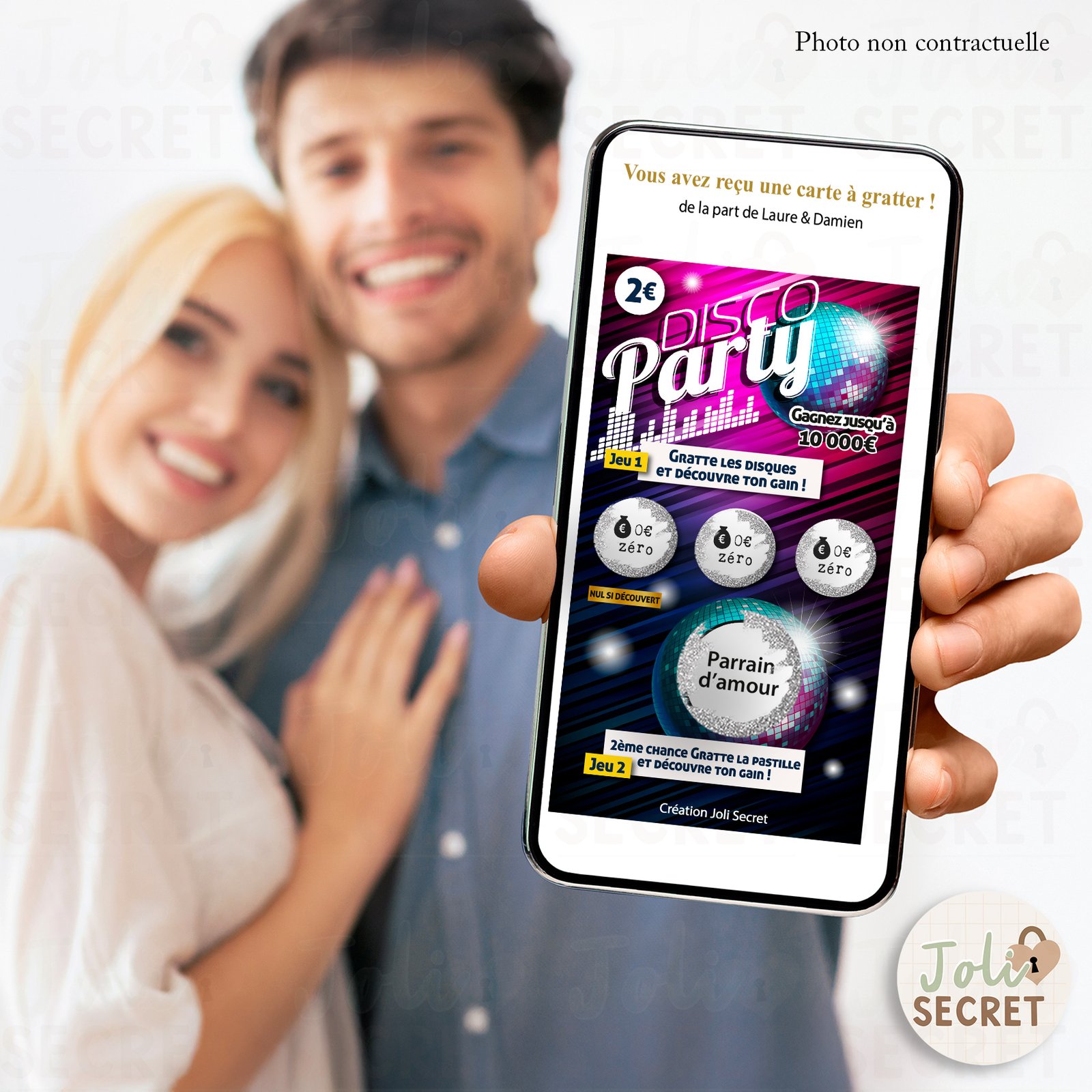 • Souvenir mémorable : Contrairement à un simple texte, cette carte à gratter personnalisée reste gravée dans les mémoires par son aspect ludique.