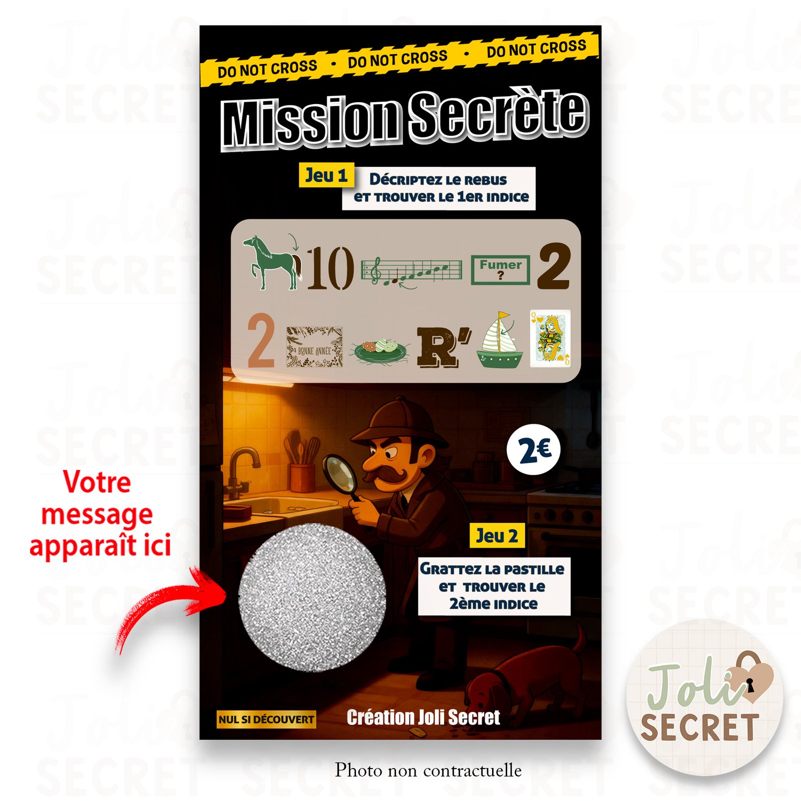 La Révélation du Message Personnel : Il doit ensuite gratter la pastille pour découvrir votre message personnalisé, validant ainsi la réponse. La révélation faite avec le doigt sur l’écran est un moment fort et interactif.